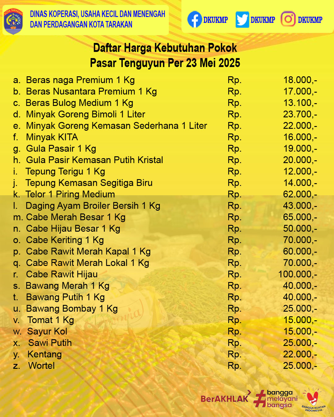 Daftar Harga Kebutuhan Pokok Bulan Mei 2025 di Kota Tarakan